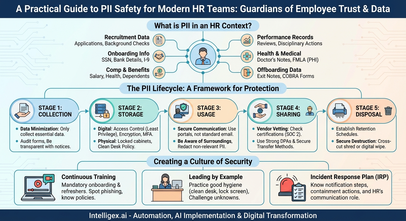 Human Resources teams are custodians of vast amounts of sensitive employee data (PII), where even a minor lapse can lead to a major security incident. This article provides a comprehensive framework for PII safety, guiding HR professionals through each stage of the data lifecycle—from collection and storage to secure disposal. By implementing these practical steps, HR can build a robust defense against breaches and foster a culture of trust and security.