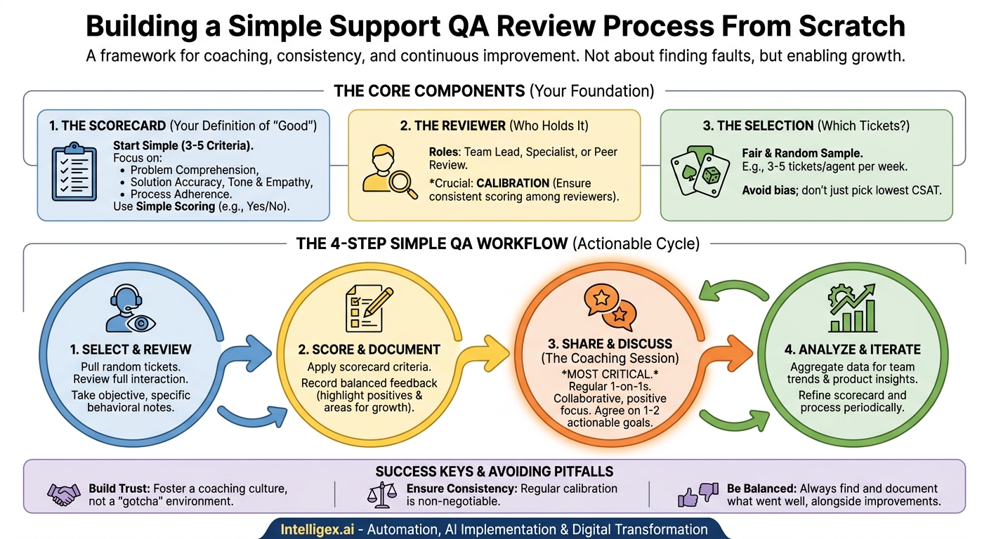 Inconsistent customer support can damage brand trust, turning customer interactions into a lottery. Moving beyond individual heroics requires a structured Quality Assurance (QA) review process. This guide provides a simple, actionable framework to implement a QA program focused on coaching and development, transforming your support team into a consistent, high-performing competitive advantage.