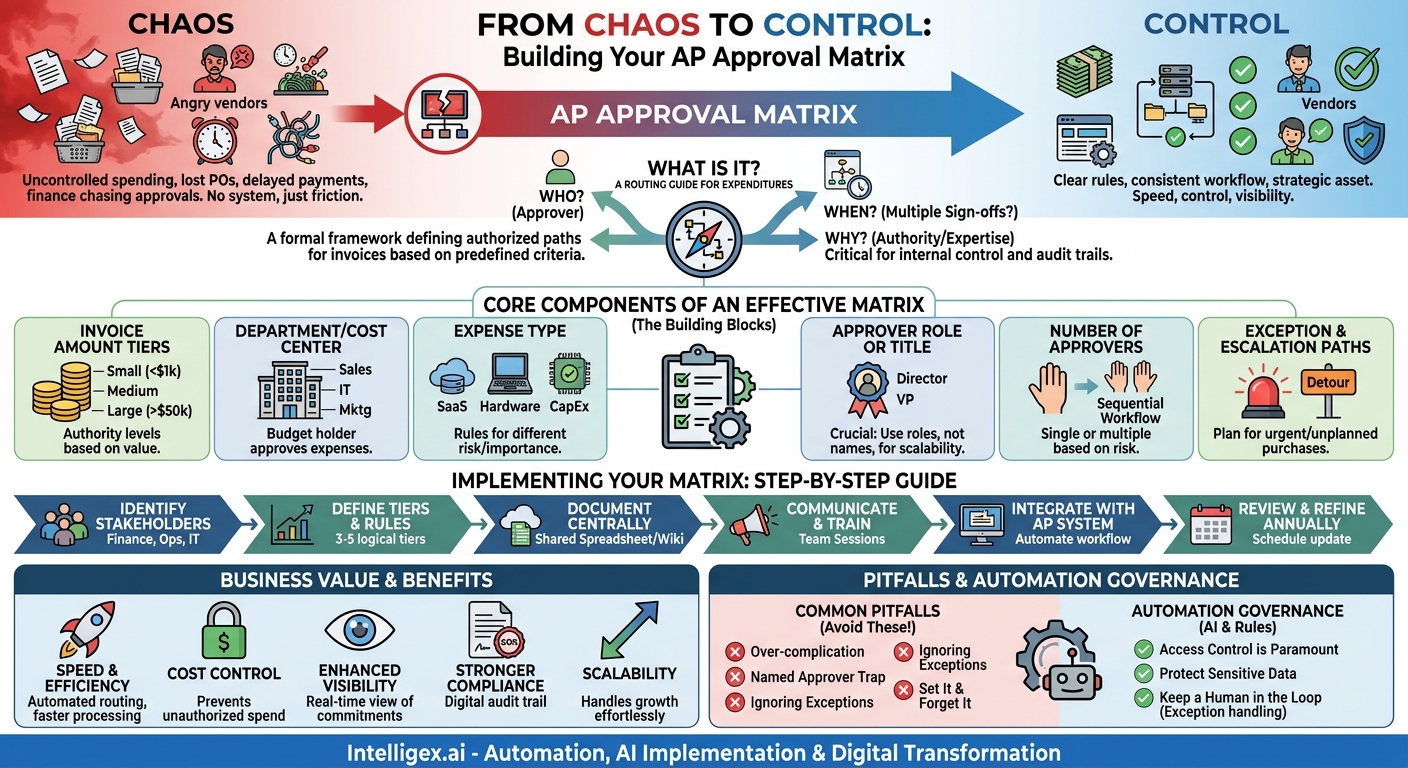 When you connect your matrix to an automated system from a provider like Coupa or others, the process becomes incredibly efficient. The platform ingests an invoice, AI extracts key data like vendor, date, and amount, and then your matrix logic instantly routes it to the correct approver’s queue. However, this automation comes with important governance responsibilities.