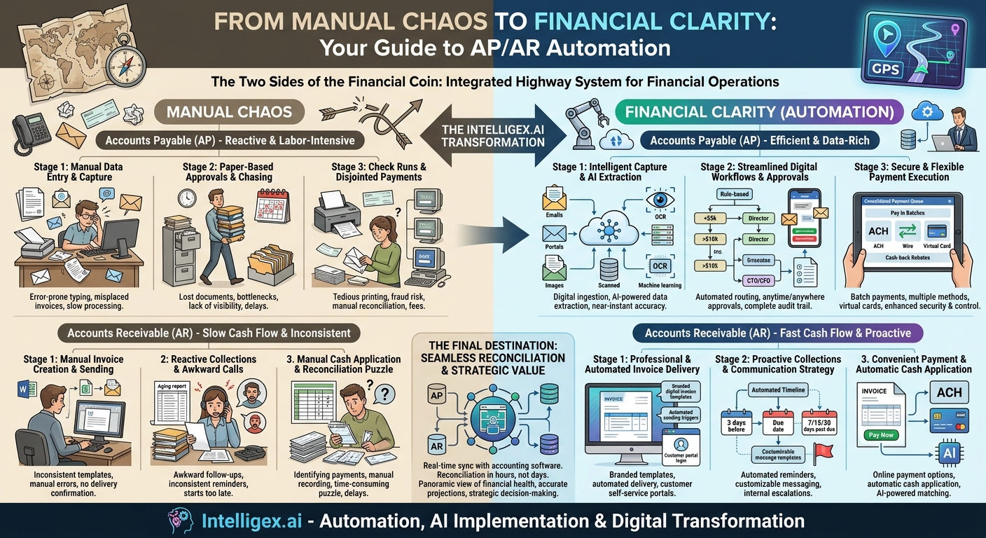 In the world of finance, the processes of Accounts Payable (AP) and Accounts Receivable (AR) are the two fundamental currents that determine a company’s cash flow. One represents money flowing out, the other money flowing in. For decades, these currents have been navigated manually, through a chaotic sea of paper invoices, spreadsheets, physical checks, and endless email chains. This manual approach is not just inefficient; it’s a labyrinth of potential errors, delays, and strategic blind spots. It’s time to trade in the old, hand-drawn map for a modern, digital GPS: AP/AR automation.