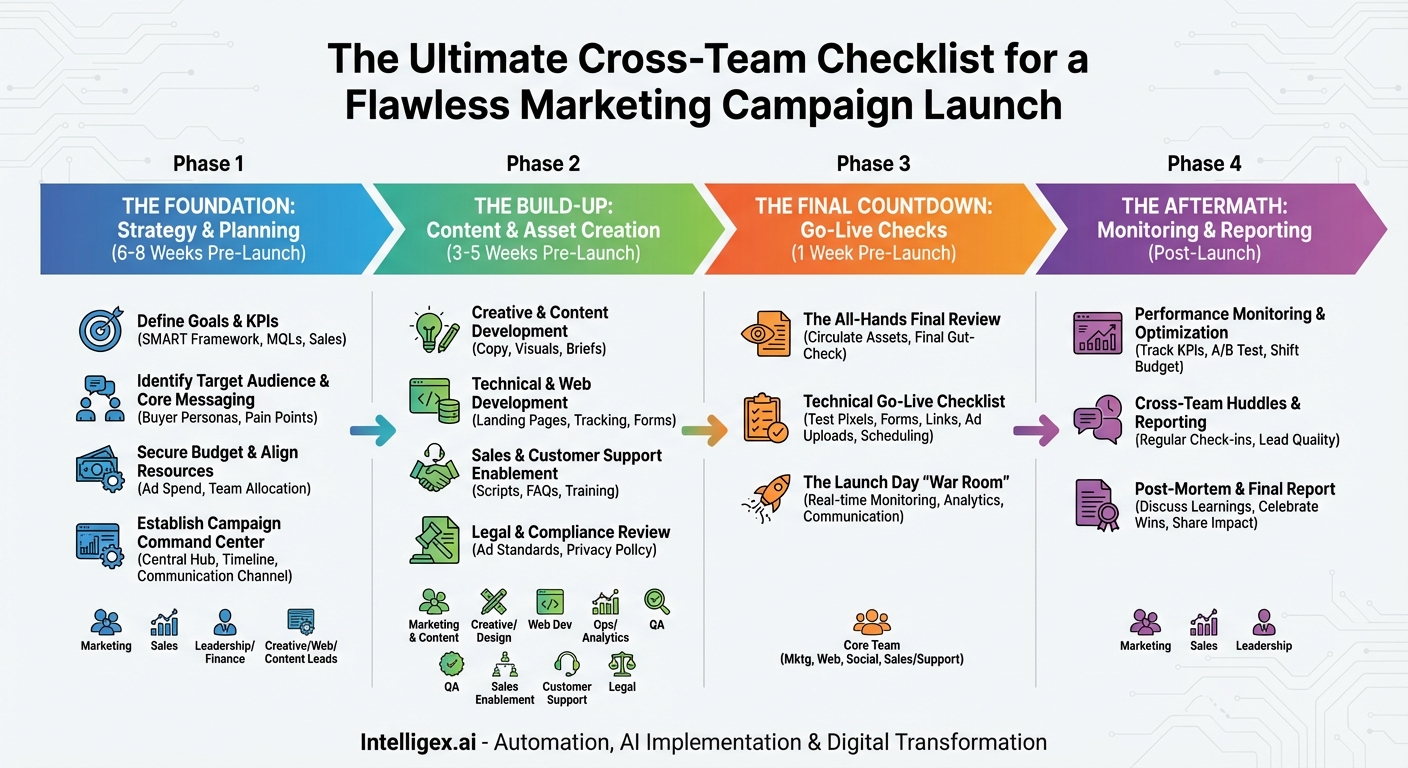 Silos are the silent killers of great campaigns. When the marketing team works in a vacuum, the sales team receives leads they weren’t prepared for, customer support is blindsided by questions about a new promotion, and the web team is scrambling to fix a broken form that went unnoticed. This is where a comprehensive, cross-team launch checklist becomes your most valuable asset. It transforms potential chaos into a coordinated, strategic execution. It’s the master plan that ensures every department—from creative and sales to legal and product—is aligned, informed, and moving in unison toward a shared goal. This checklist is your blueprint for turning a high-stakes launch into a smooth, successful, and repeatable process.